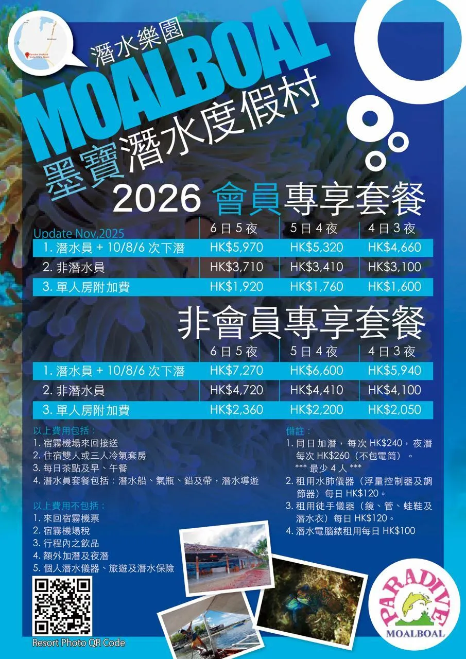 | Moalboal會員專享套餐 | 6日5夜 | 5日4夜 | 4日3夜 |